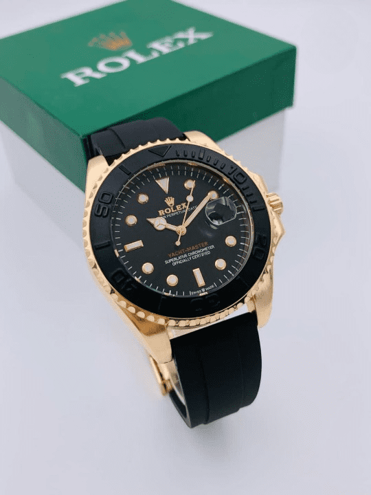 ( Golden ) Rolex Stylish Watch for Men Adjustable Rubber Strap | Heavy Master Lock | Steel Buzzle Working – Without Box